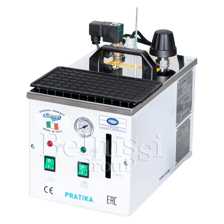 - Profesionální parní vyvíječ Comel Pratika 5L s 1900 W ohřevem a 5litrovým bojlerem. Ideální pro průmyslové i domácí použití, s externí zásuvkou pro připojení příslušenství a plynulou regulací páry.