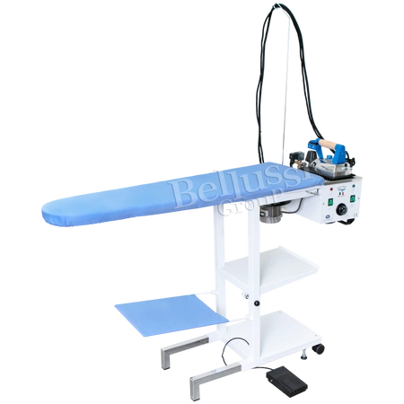 Profesionální skládací žehlicí stůl Comel Comelux Maxi C s vestavěným generátorem páry 1,5L, odsáváním a vyhřívanou deskou