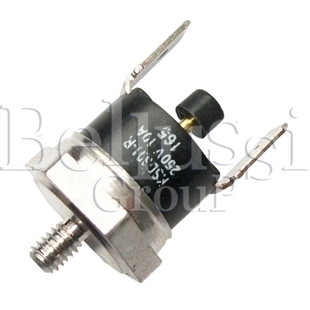Tepelná ochrana (tepelná pojistka, termostat) s resetovacím tlačítkem (nesamočinná) do 165 C pro hliníková topná tělesa A0970 a měděná topná tělesa A0951 nového typu pro parní generátory Comel Pratika a žehlicí stoly Comel Maxi C5 a Futura RC5.