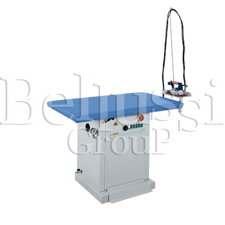 Rectangular (125 x 74 cm) electrically heated table Comel MP/FC. Temperature regulation of the table by thermostat. The table has fittings for connection to external steam generator and central vacuum. Complete of silicone iron mat, cable stand.
