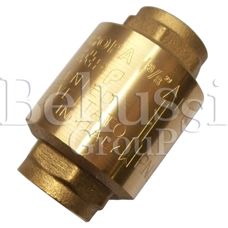 Mosadzný spätný ventil s vnútorným závitom 3/8", priechodný, tlaková pružina s mosadznou klapkou.